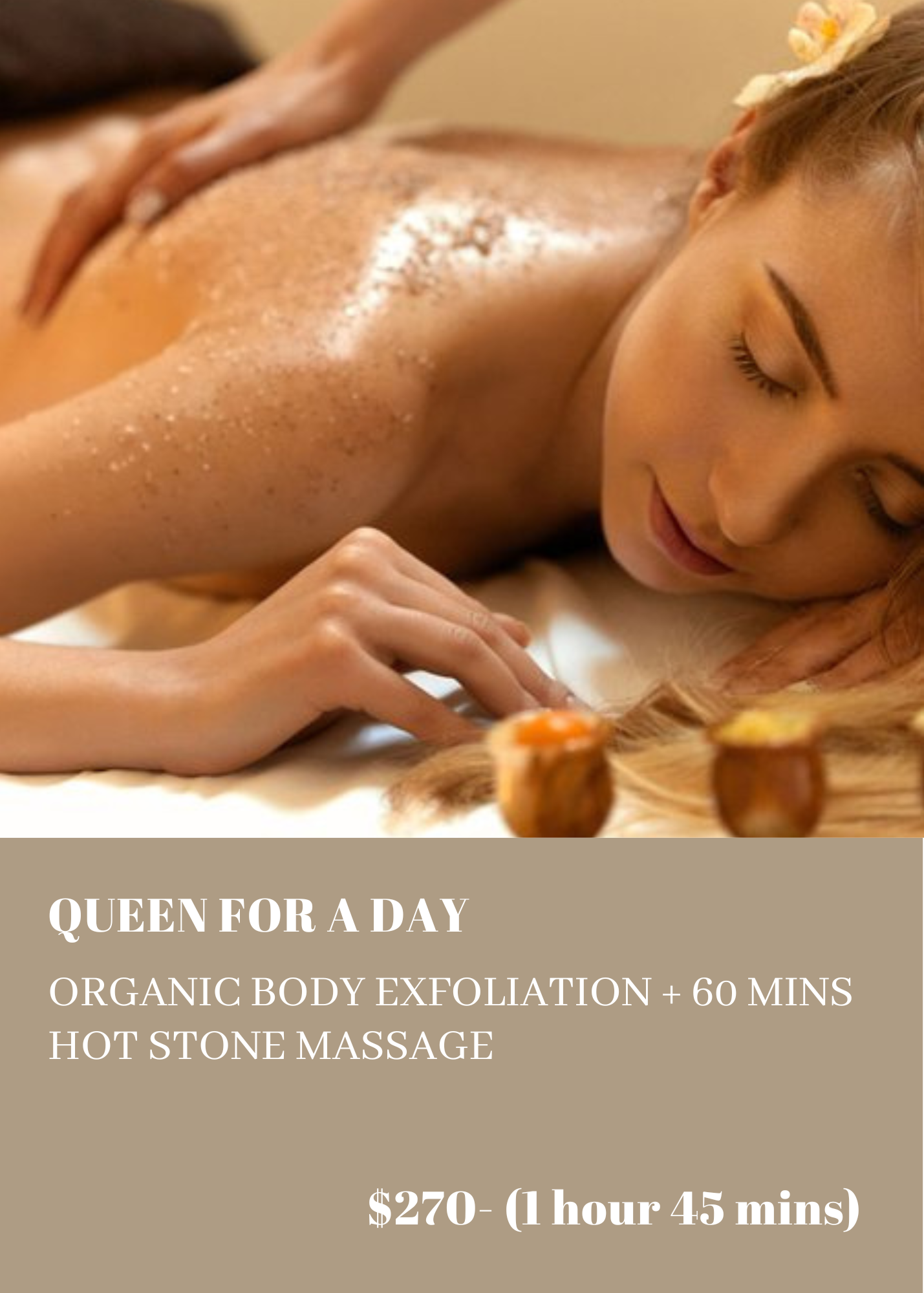 We offer limited-time Mother's Day packages that can be conveniently purchased as a gift directly from our website. Alternatively, you can book any of these packages by calling us or book online, whether it's for yourself or as a gift for someone you love. If you're unsure about what to buy, you can simply purchase our online gift cards, which are perfect for this special day.